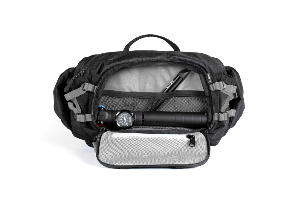 Do malého priestoru sa zmestilo množstvo praktických funkcií: predné vrecká s priehradkami, minivrecká na páse, elastické bočné vrecká... A čo viac: je kompatibilná aj s hydratačným systémom.